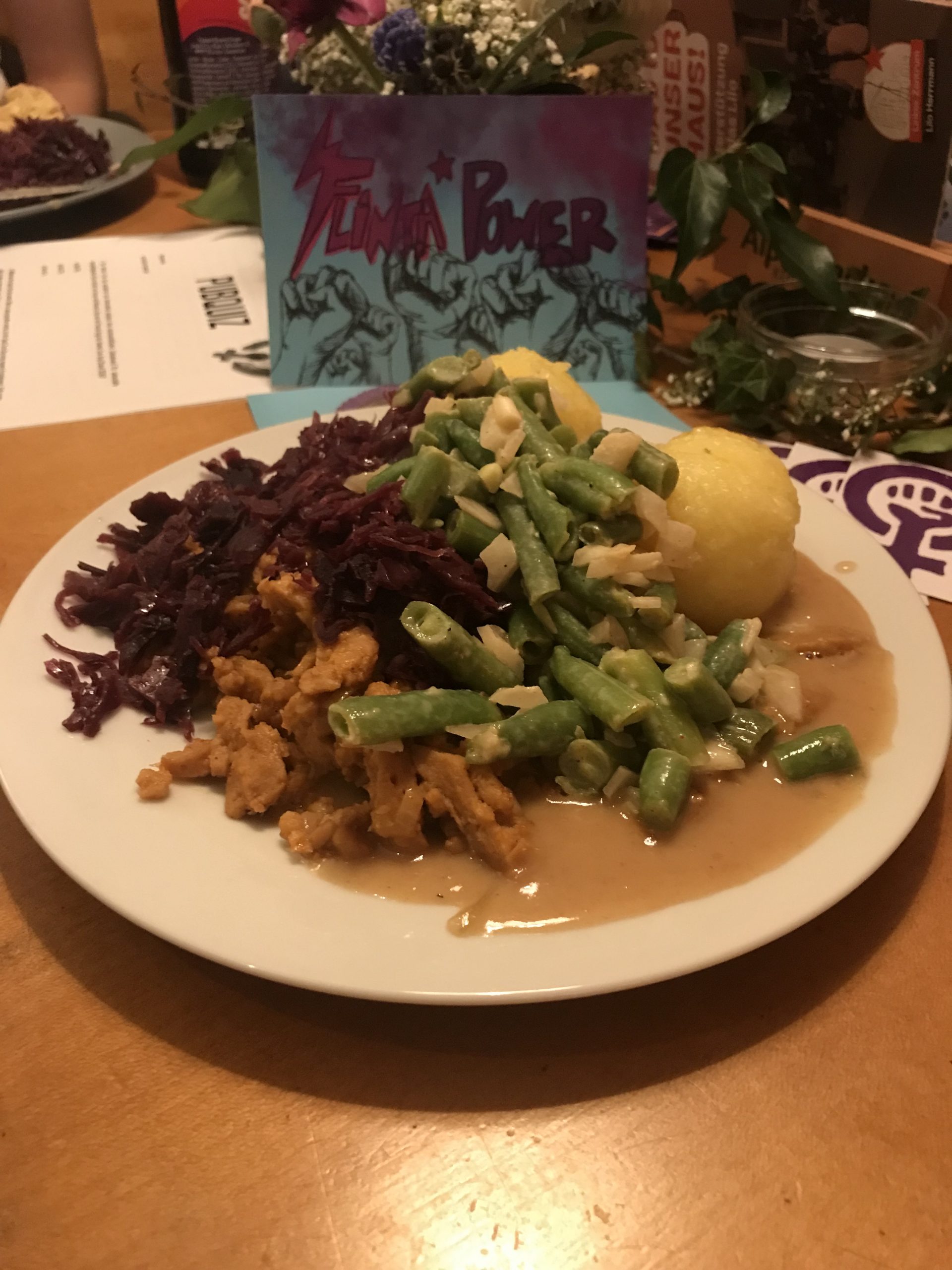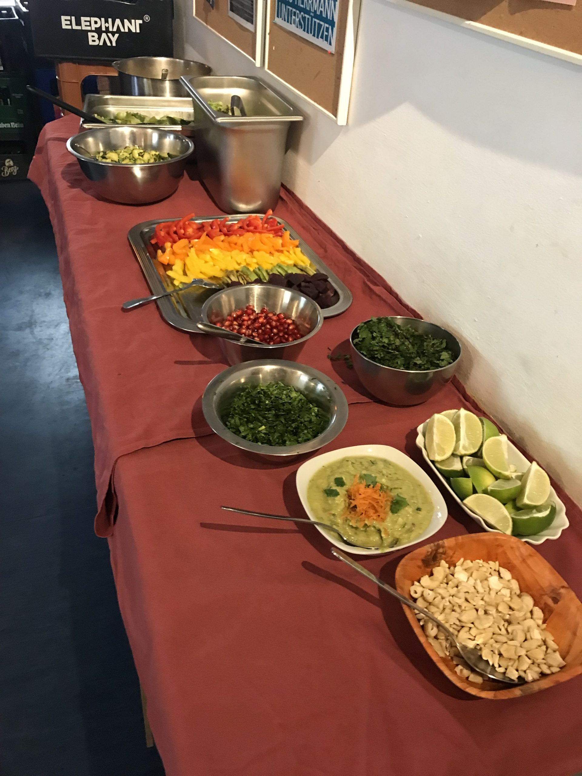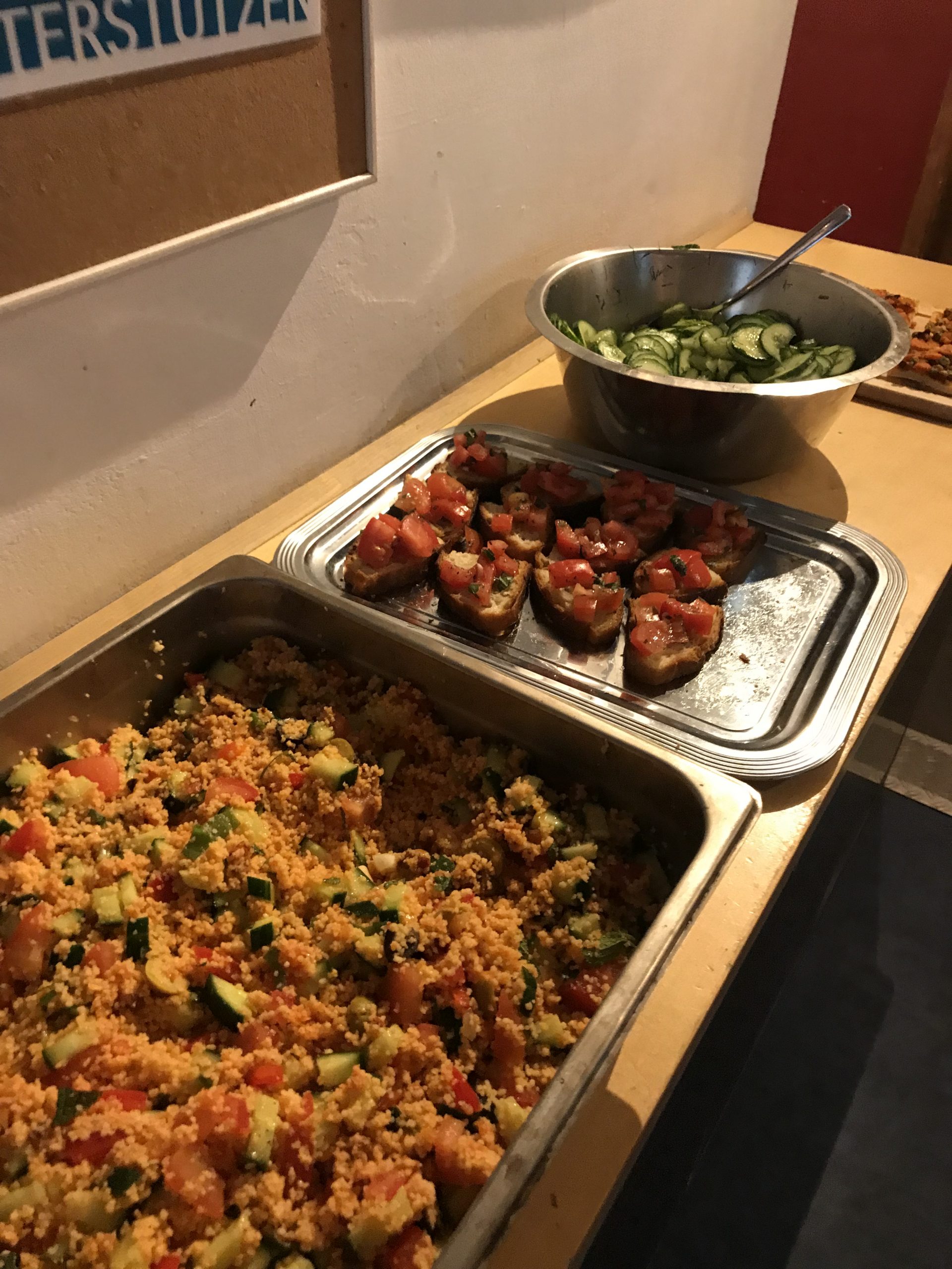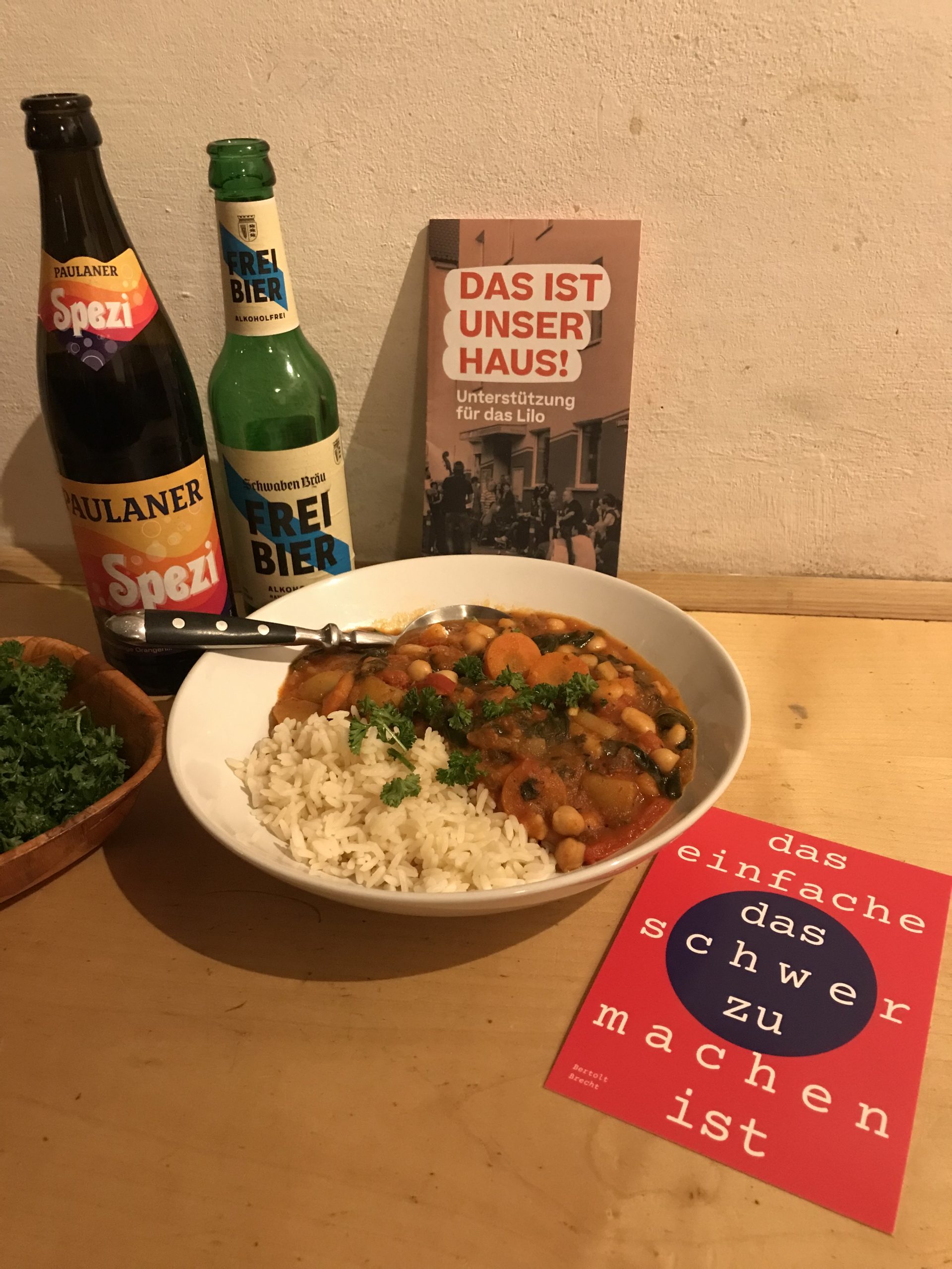 Zubereitet werden leckere vegane und vegetarische Speisen, die zum Selbstkostenpreis abgegeben werden. Dazu gibt es kalte Getränke und gute Musik. In gemütlicher und solidarischer Atmosphäre steht das Zusammenkommen und der Austausch im Vordergrund. Ob Aktivist:in oder Nachbar:in: Alle sind herzlich eingeladen.