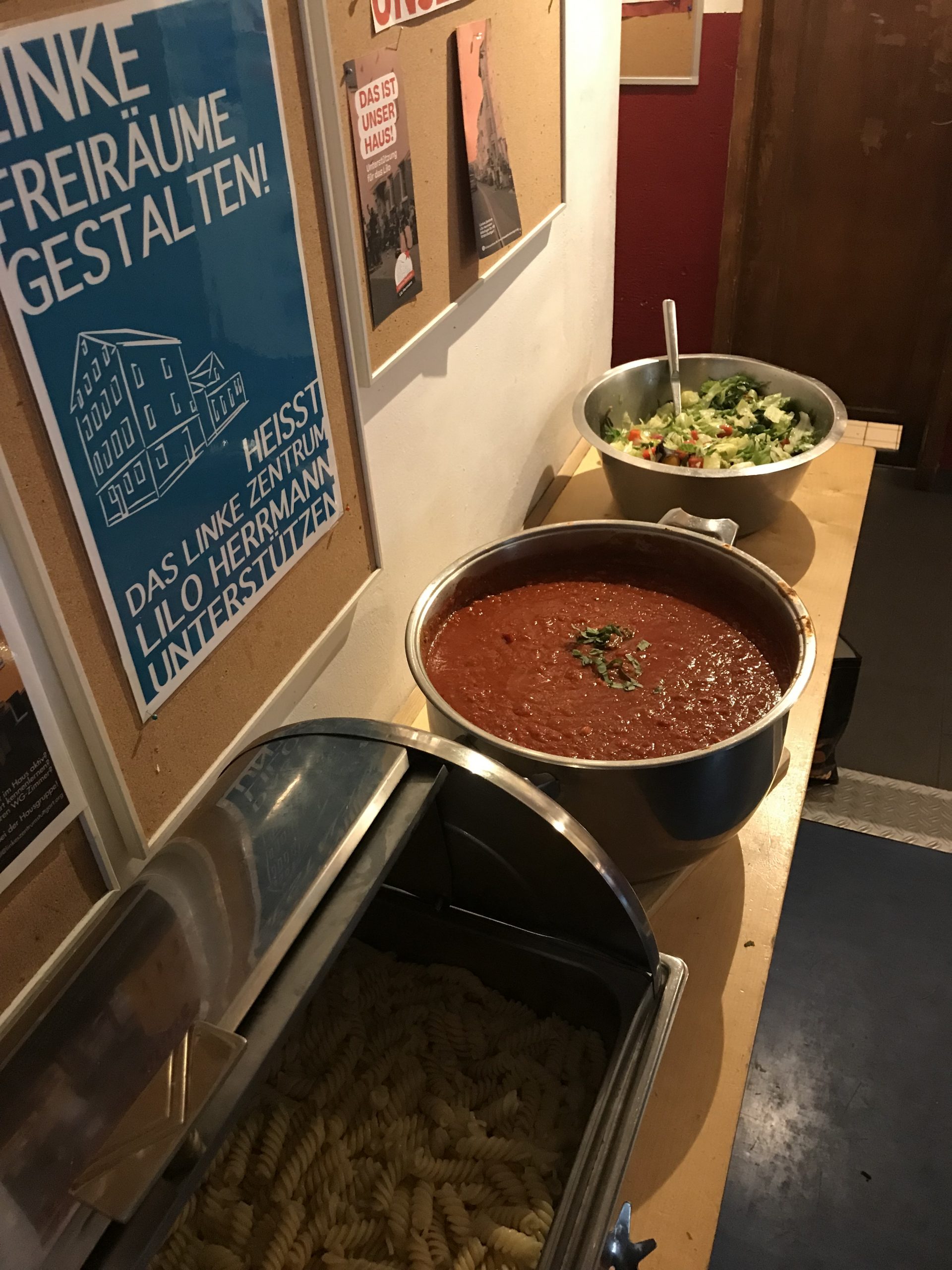 Jeden Samstag lädt das Linke Zentrum zur Volxküche ein. Unser Zentrum öffnet dann um 19 Uhr.