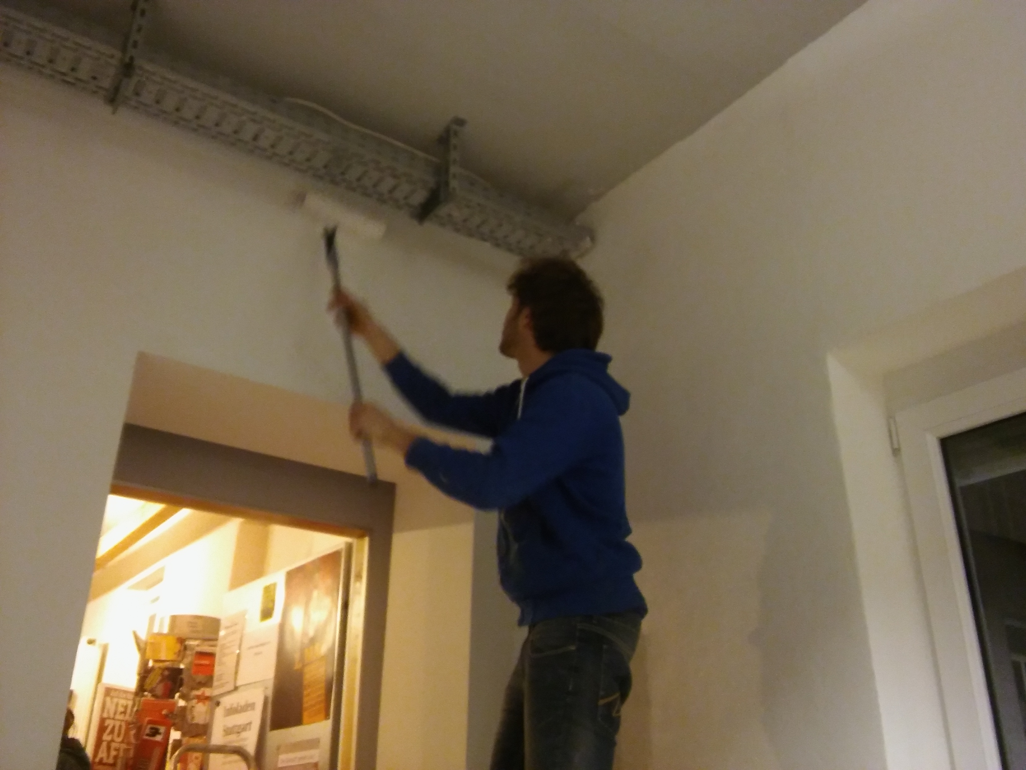 Kurz vor dem 1. Mai Fest hatten wir am letzten Samstag zum Renovieren eingeladen. Es wurde gebastelt, gestrichen und gewerkelt. Für den Veranstaltungssaal haben wir gepolsterte Stühle herbeigeschafft und die neue Saaltüre verputzt. Unsere Werkstatt und der Dachboden wurden aufgeräumt und neu sortiert. Mehrere Stellen wurden neu gestrichen und ausgebessert.