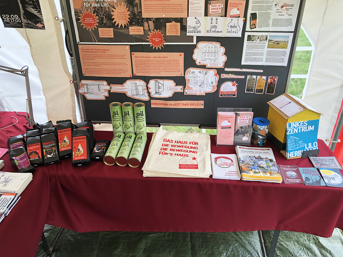 Galerie 26. Oktober 2025 Gallery 1 von 36 Infostand Fest Solidaritäts Transparent an der Außenfassade vom Lilo Infostand Infostand Infostand Infostand Fest Fest Fest Fest Infostand